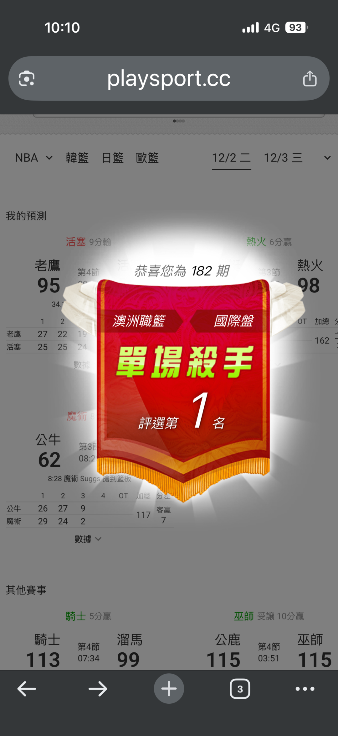 >> 澳洲職籃11月主推勝率第一名、獲利第一名!