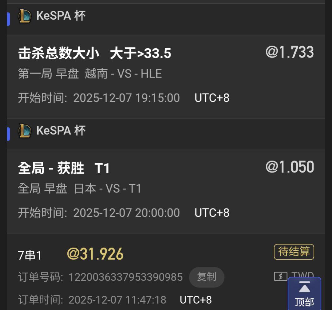 那今天必定要串的,就是 T1 VS 日本,賠率低不重要(這是拿來給你串關的,或是洗水用)