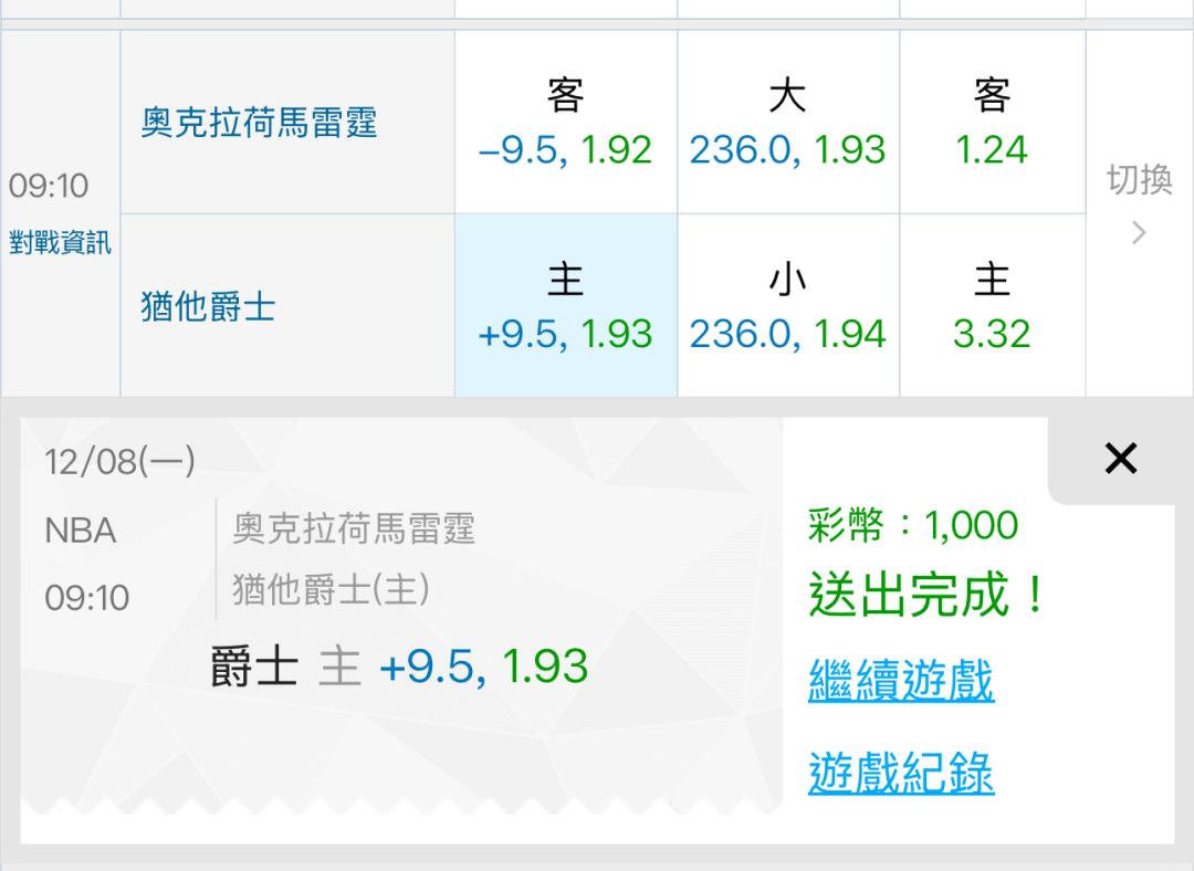 NBA >> 12/9🏀NBA 勝分差 送一場《雷霆vs爵士》