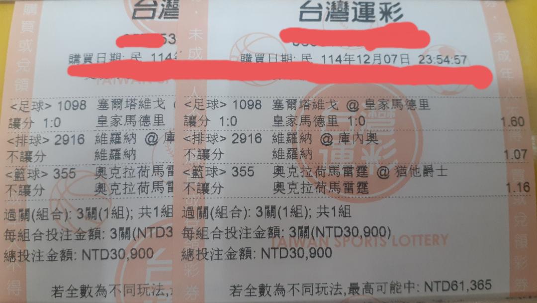 足球 >> 甲霸兩倍單,足球,排球,籃球, 2025_12_8