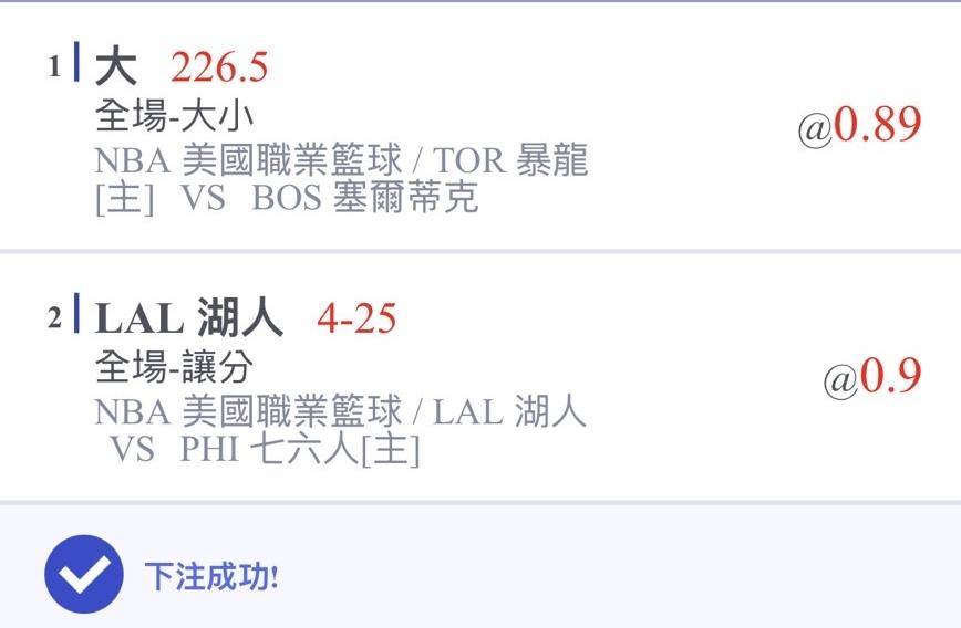 我今天這樣串關第一關過了,接下來湖人剛好卡在贏4分這樣算有過關嗎