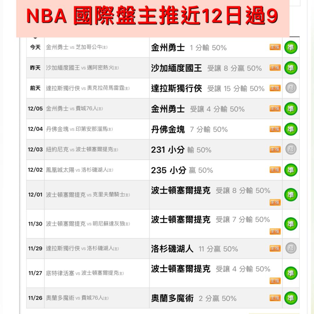 NBA >> 12/9🏀🎑NBA 國際盤主推近12日過9《太陽vs灰狼》