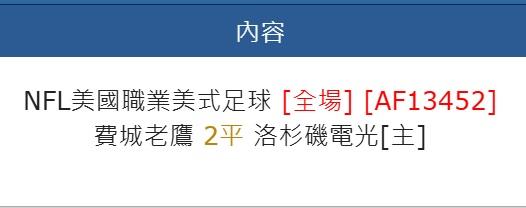 美式足球 >> [今天 3過2]-[台彩單場 電光VS老鷹]-[高信心場 一場決勝]-有信心 繼續贏