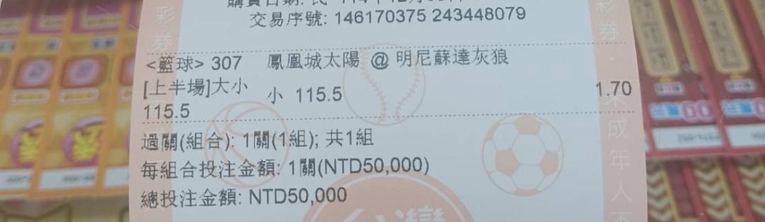 >> 太陽灰狼上半115.5小15萬