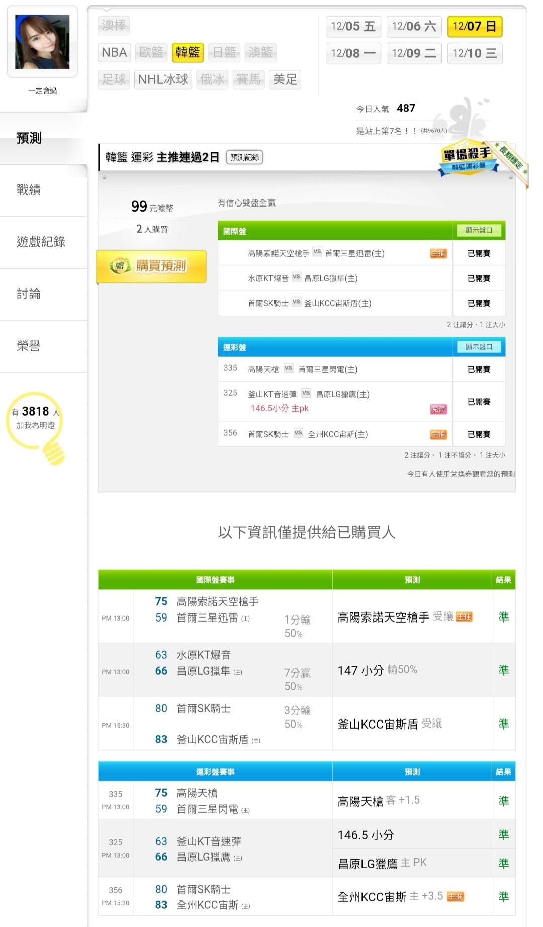 韓國職籃 >> 信心雙主推~有把握全贏
