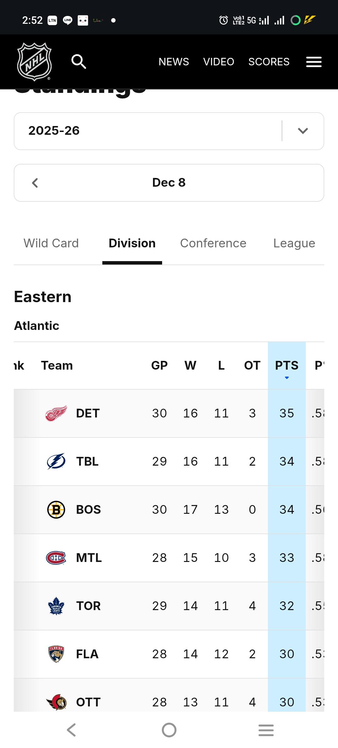 閃電分區第二名,四連敗,這樣的軌跡趨勢很像鴨子之前的模式,明天預測閃電直接PK勝加拿大人
