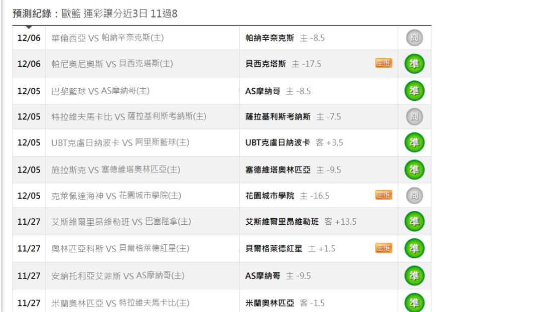 >> 歐籃分享1場(運彩讓分 近3日11過8)