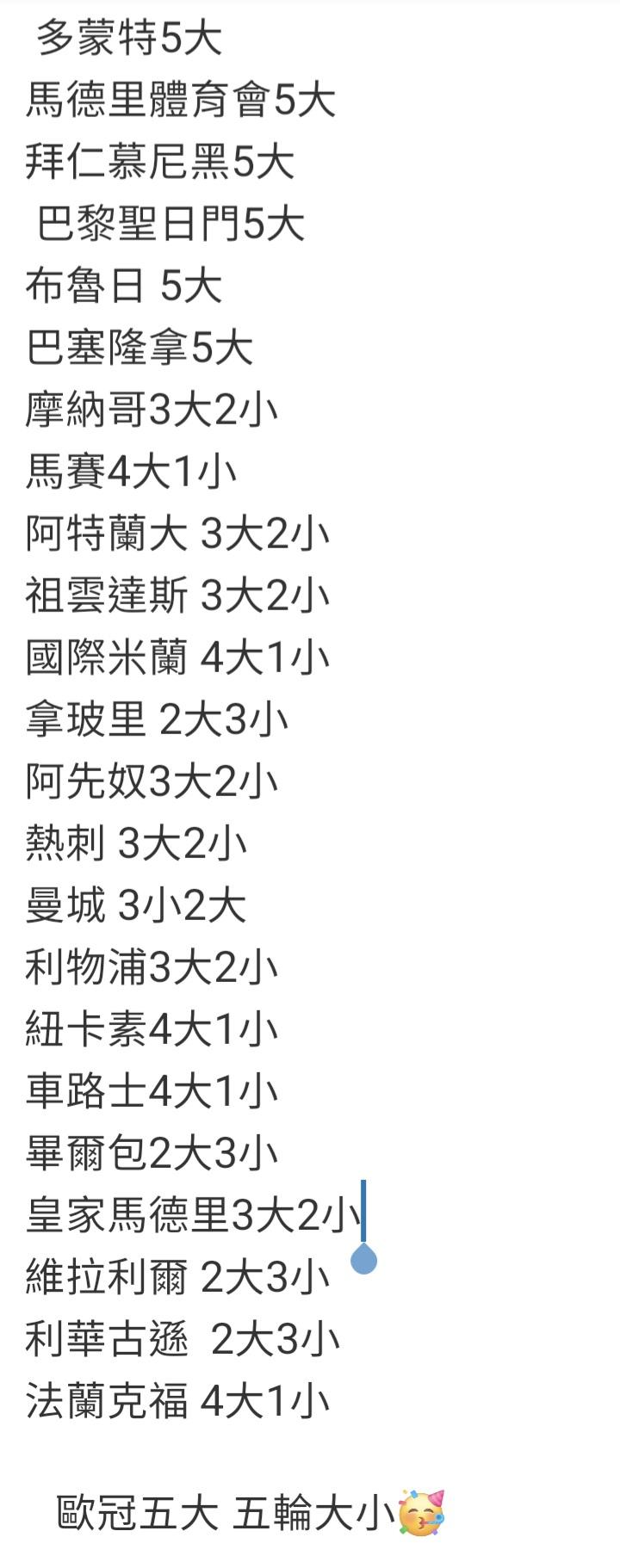 我記錄的5大聯賽 第五輪大小🥰🥰