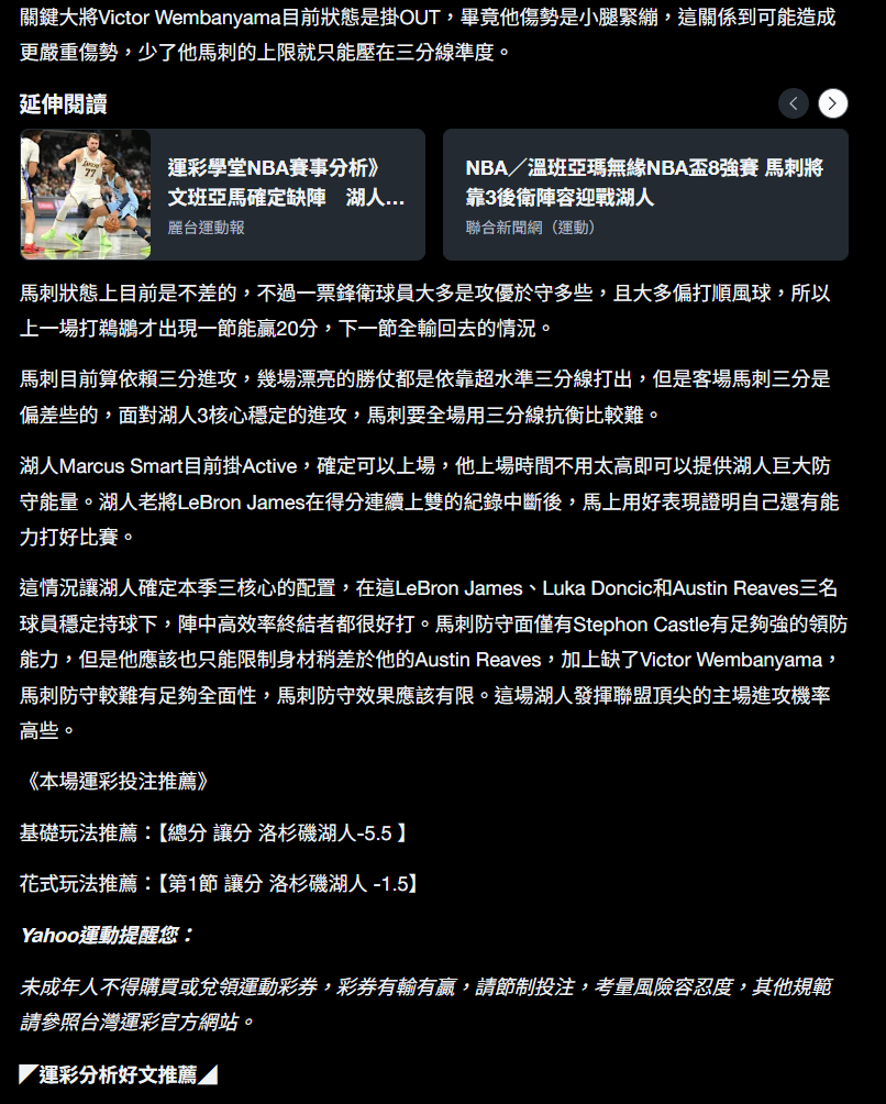 NBA >> 馬刺 pk 湖人 第一節該大?還是小?