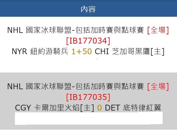 NHL冰球 >> [高信心場 二場決勝]-[台彩場中 黑鷹VS遊騎兵]+[火焰VS紅翼]-有信心 拚全過