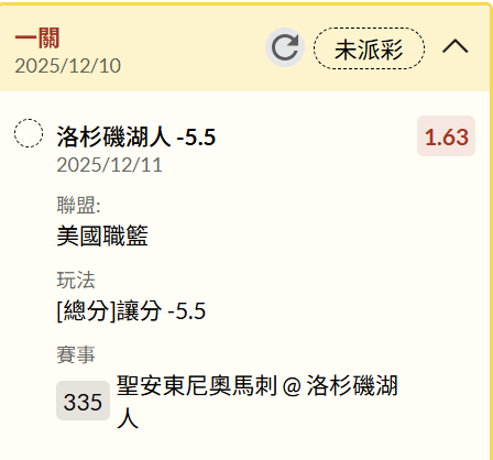 >> 12/11 NBA 運彩單場 SA vs LAL