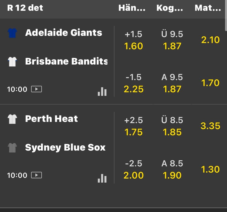 澳洲職棒 >> 2025.12.12 澳棒 白天盤口