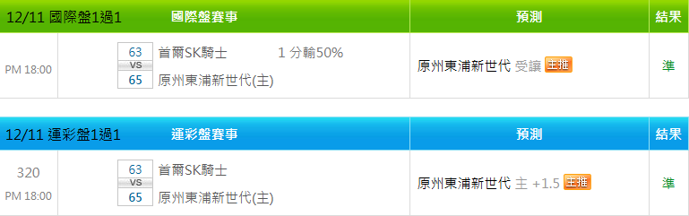 韓國職籃 >> 12/12 韓籃推薦【昨日雙盤 2過2】【小叮嚀有注數推薦】【內附台灣運彩單場】【今日特價】