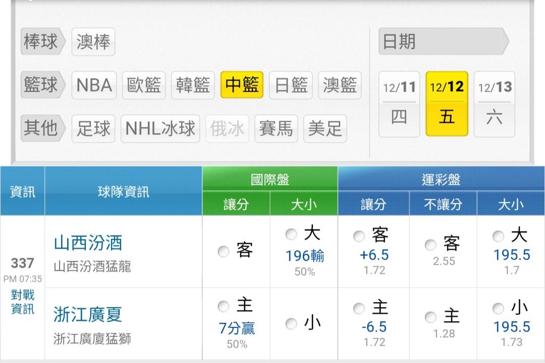 中國職籃 >> 19:35中籃盤口