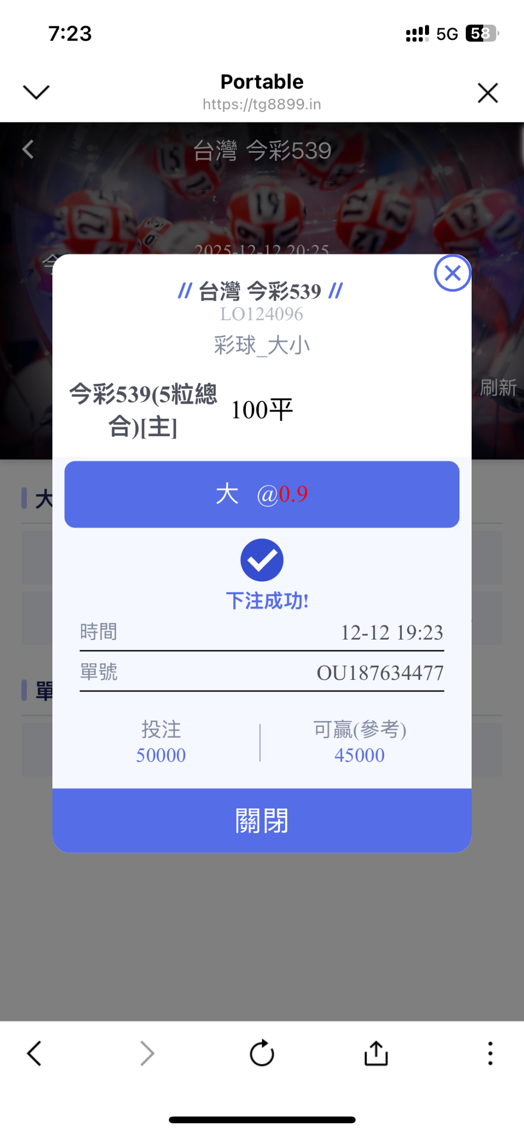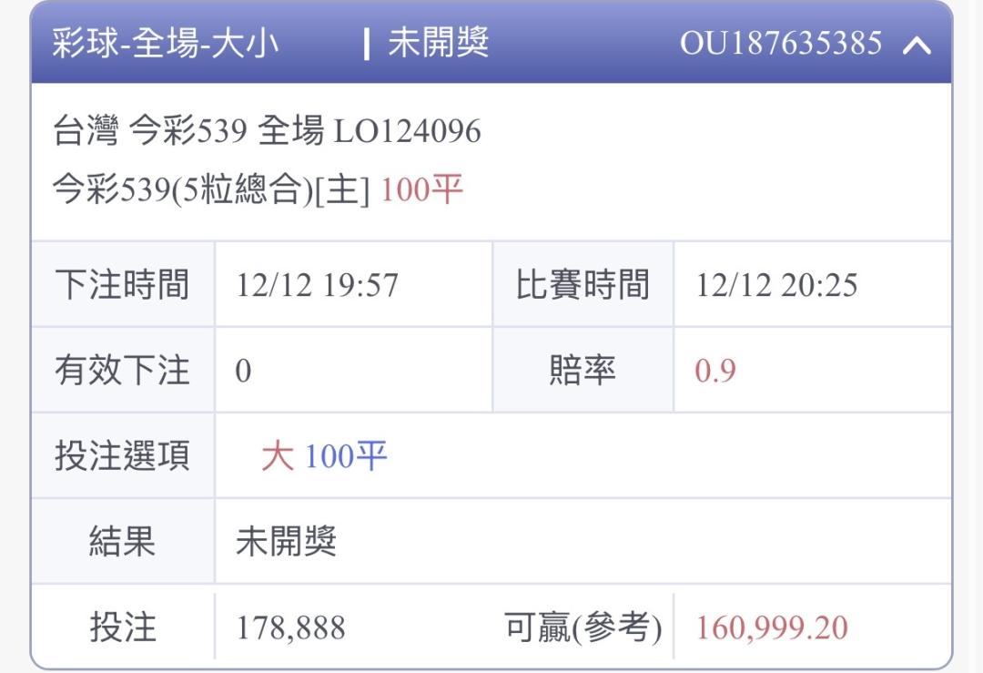 彩球 >> 539「100大單大橘大屁屁」大樂透「六粒總大」