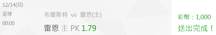 (12/14) 法甲:雷恩 VS 布雷斯特★勝平負預測★
