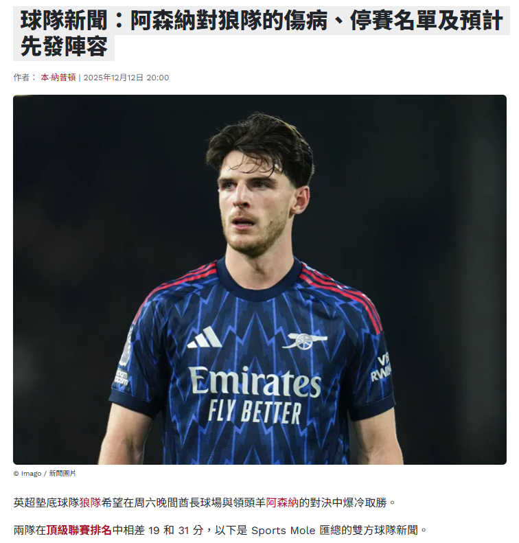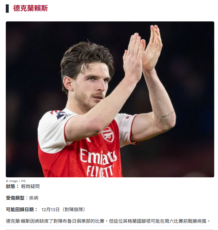 >> (12/14) 英超:正確比數★球隊新聞、預測陣容、傷病與傷停★