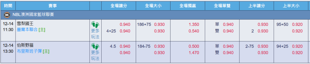 澳洲職籃 >> 12/24【國際 主推近11日過8】【運彩主推連88%】11:30初盤分享+上半場=大分推薦!!