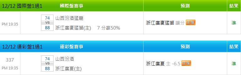 中國職籃 >> 12/14 中籃推薦【國際主推信心度高】【前日雙盤 2過2】【免費場歡迎參考】【今日特價】