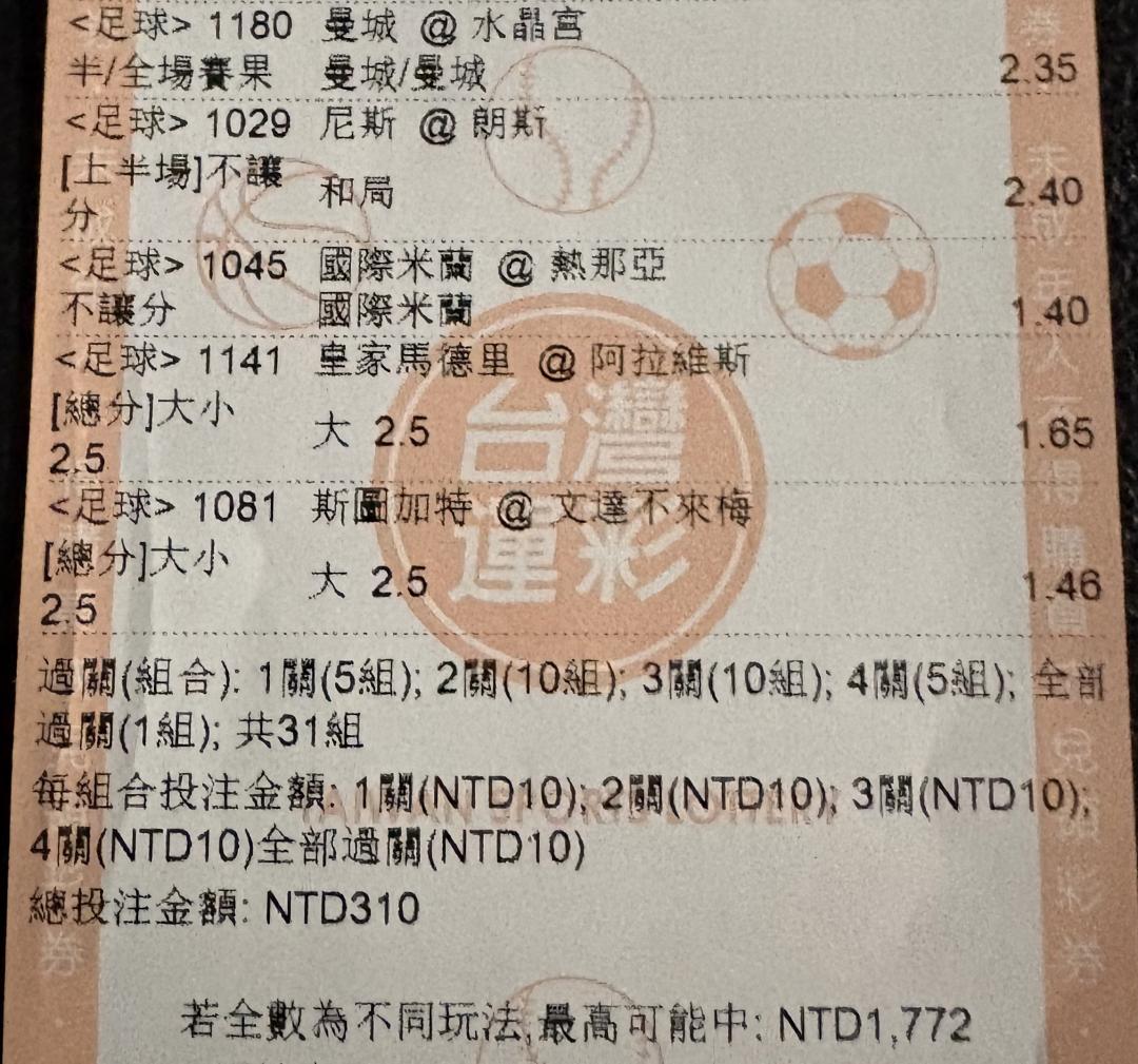 主串優先,每場1.65-1.75單賠乘積達7.0,資金60%主串、30%三關拆分、10%備用。