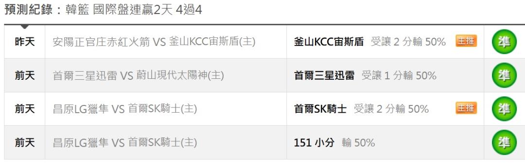 >> 韓籃1場分享(國際 連贏2天 4過4)
