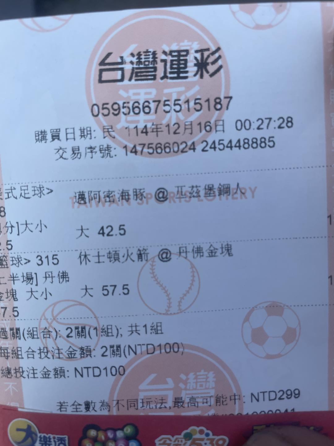 感謝金塊上半場剛好打57.大剛好讓我過 還有美足邁阿密海豚最後一節救了我42.5大分 還好海豚兩次達陣 終於讓我順利收 感謝🙏