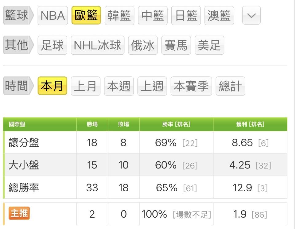 歐洲職籃 >> 🔪419期 國際/運彩莊家殺手🔪 🔥國際主推連2勝🔥5天贏26過18🔥 ✨明日特價79元✨