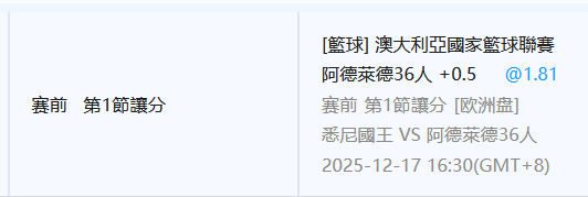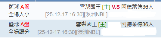 澳洲職籃 >> 12/17【國際主推近12日過9】【雙盤全過】【小叮嚀2X1過關】第一節推薦!!