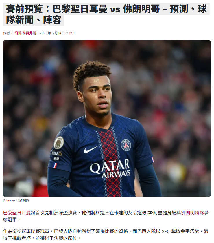 >> (12/18) 洲際盃:正確比數★賽前預覽★(僅供參考、無法保證獲利)