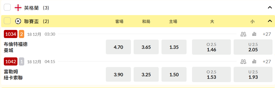 >> (12/18) 英聯杯:不讓分★單場預測★(僅供參考、無法保證獲利)