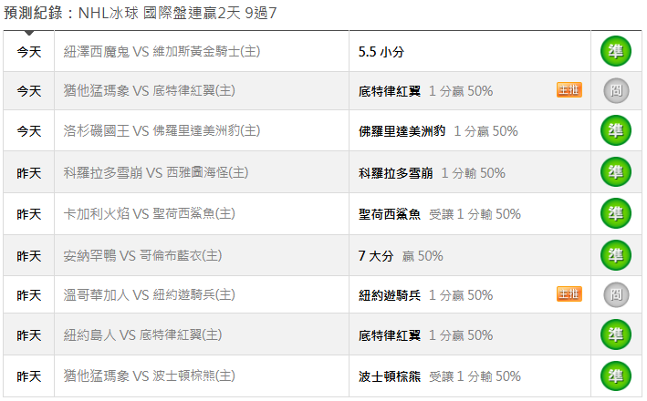 >> 12/19 NHL推薦 國際 連贏2天 9過7