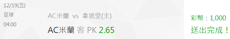 (12/19) 意超杯:拿坡里 VS AC米蘭★勝平負預測★