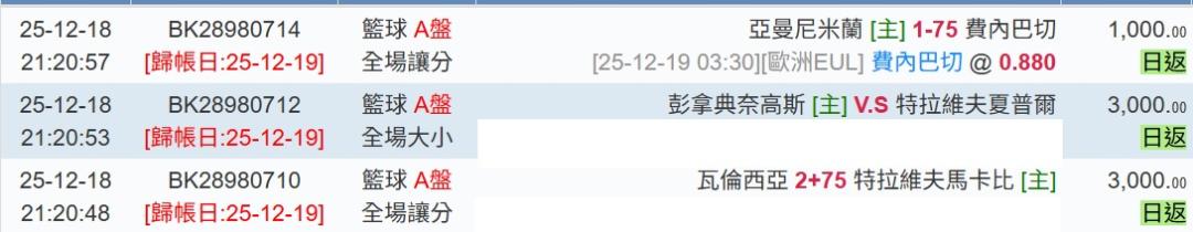 >> 歐籃分享1場(國際大小 連贏3天6過6)