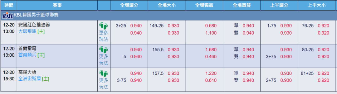 韓國職籃 >> 12/20【國際主推連過2天】初盤分享+13:00上半場=讓分推薦!!