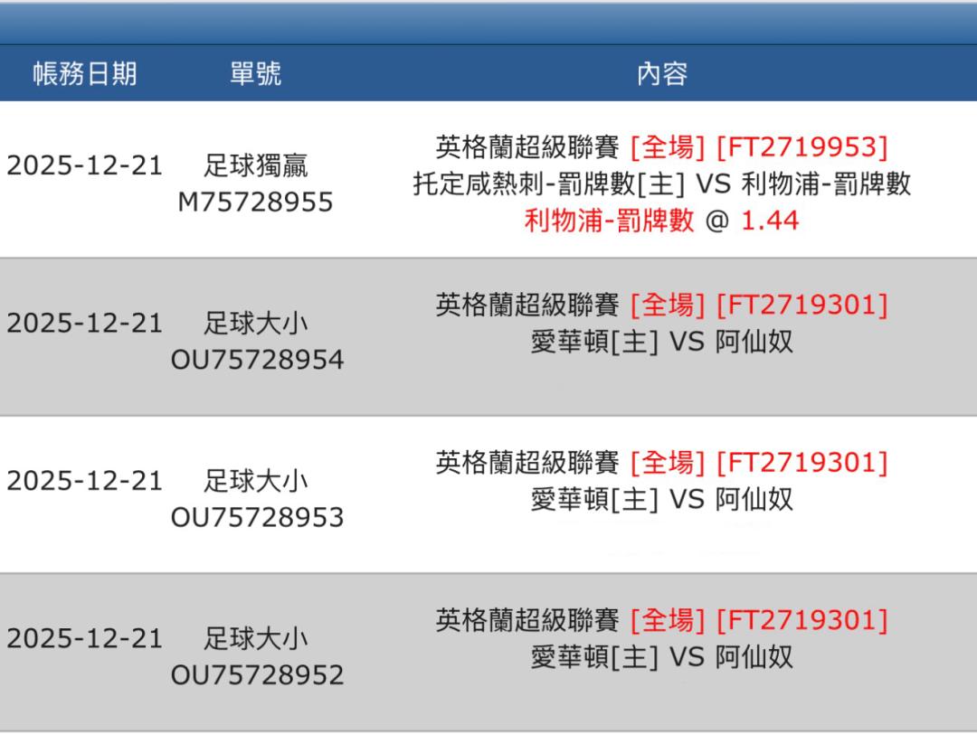 >> 半夜英超「單場 3倍注」兵工廠VS艾佛頓,這場我自己很用力,真的不要再說沒跟到了!