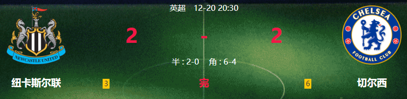 足球 >> (12/20~21) 正確比數:3場數據預測★3中2★