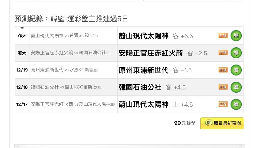 韓國職籃 >> 12/22 韓國職籃 運彩主推連過5日 穩定獲利高勝率 歡迎參考合牌