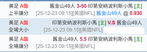 美式足球 >> 12/23【國際大小 連贏4天4過4】台彩單場09:15上半場推薦!!