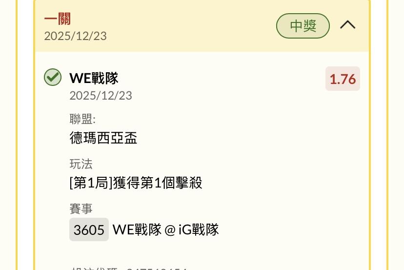 電競 >> 現主時過關單 幸福來得太快了吧 感謝WE首殺 過關收