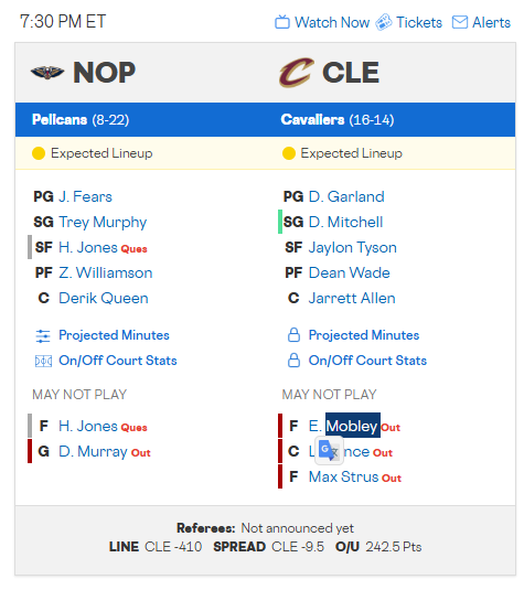 Mitchell明天大概率出戰,但騎士的問題來自主力陣容中的一號位Garland與中鋒Allen,兩個人數據幾乎都生涯最差,本來騎士陣容就是偏矮,Allen只有6呎9,Garland是6呎1,Mitchell也是小尺寸,陣中防守最好的Mobley 又因傷休兵,騎士身高本就有劣勢,在數據又打不出來的本季,單靠一個Mitchell實在扛不住。只要限制住他騎士等於缺臂少腿。