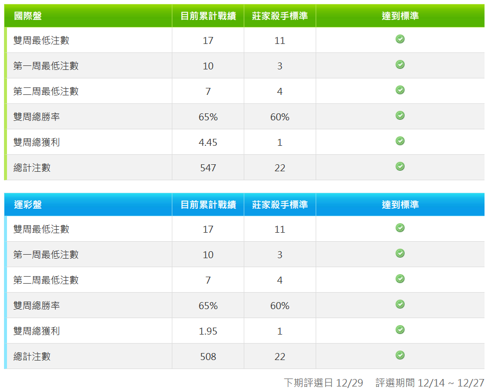 澳洲職籃 >> 12/26【國際 主推近14日過10】【第49周主推第1名】16:30第一節推薦!!