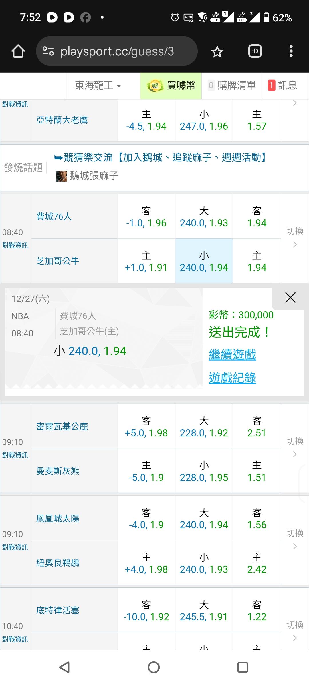 NBA >> 今天就來場....(重注三十萬彩