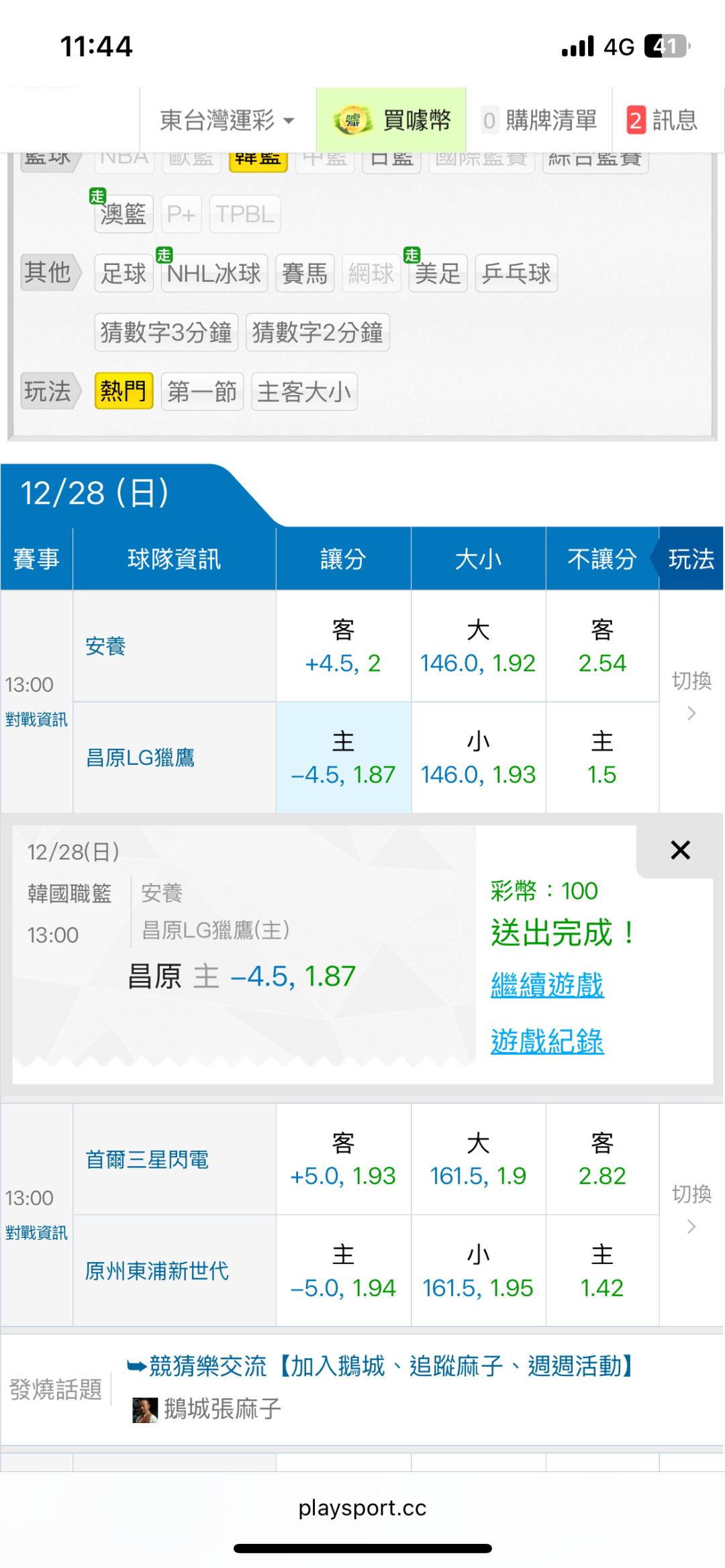 韓國職籃 >> 12/28東台韓籃國際盤【主推近14日過11】主推信心滿滿(貓場)均注獲利 特價用完了~