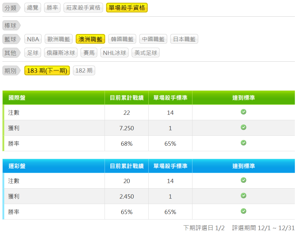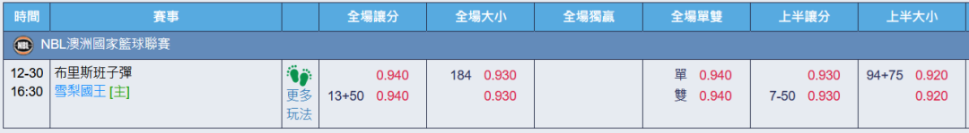 澳洲職籃 >> 12/30【國際主推近14日過10】【第51周主推第1名】16:30第一節讓分推薦!!