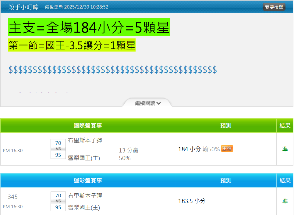 澳洲職籃 >> 12/31【國際主推近15日過11】【小叮嚀2注全過】14:30第一節大分推薦!!