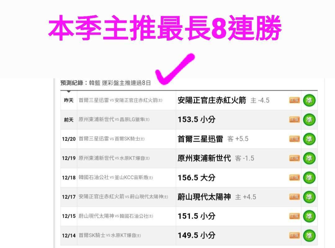 韓國職籃 >> 【本季主推最長8連勝】【本月主推勝率70%】99%信心主推~讓你一次綠回
