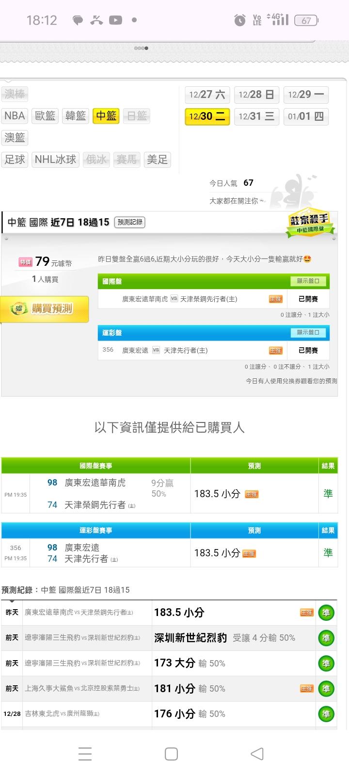 中國職籃 >> 中籃連贏中,近期大小分12場贏11場,今天再拼大小分輸贏🤩