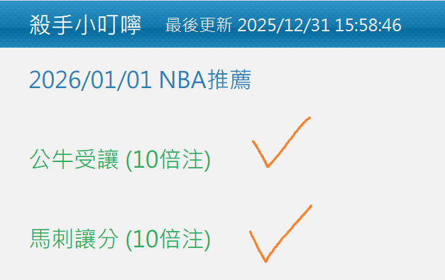 NBA >> 1/02 NBA推薦【國際盤連贏2天 4過4】【11月運彩盤總勝率第1名】【內附台灣運彩單場】