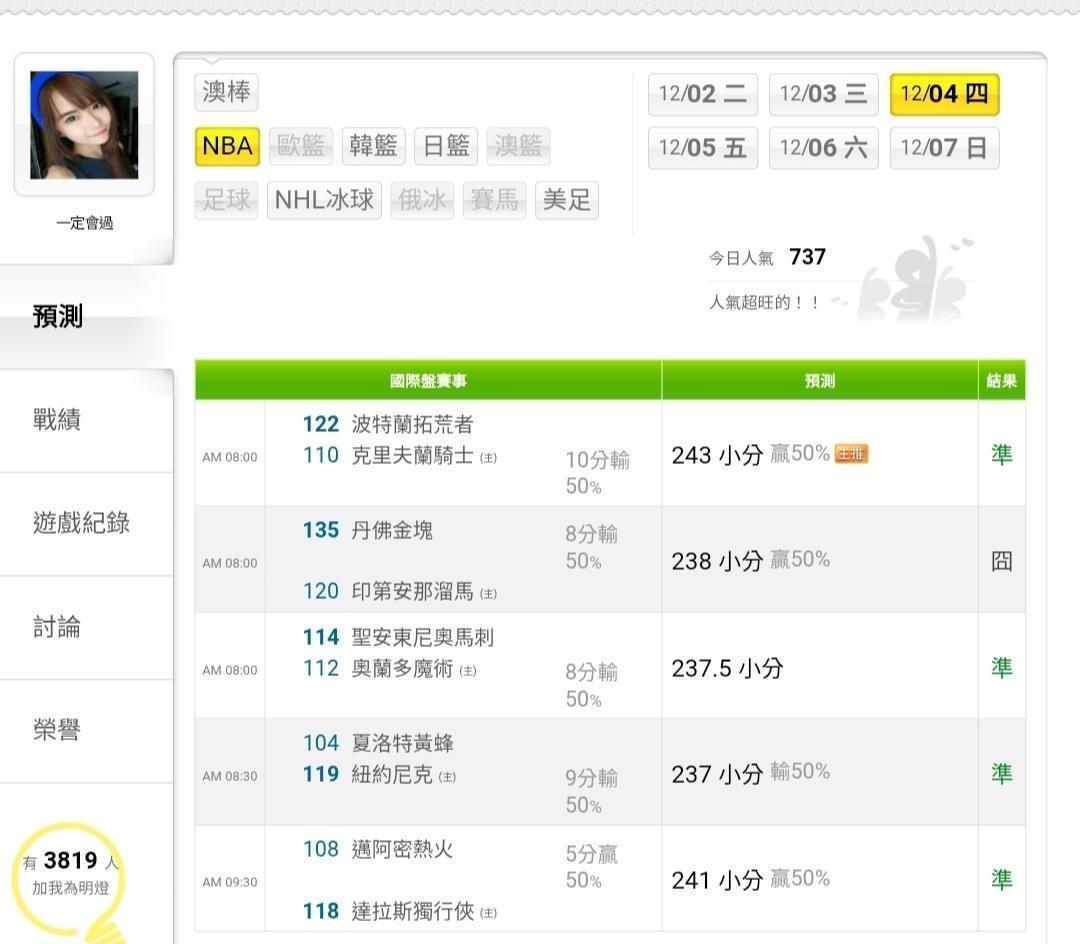 NBA >> 【今天3過3】【主推近7過6】99%信心主推(貓場)100倍注~有把握雙盤全贏