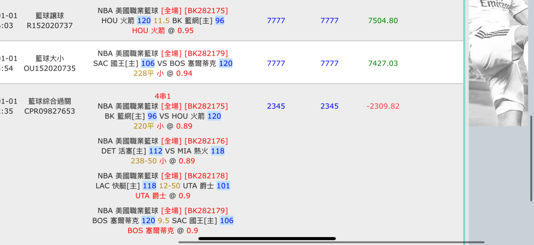 >> 今天7過6 帶一串 爵士第四節太誇張了 不然再過2串